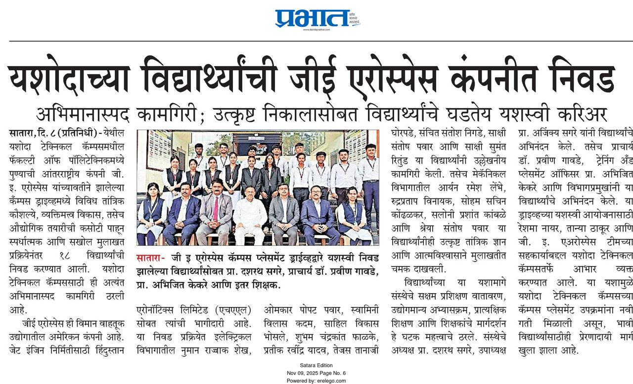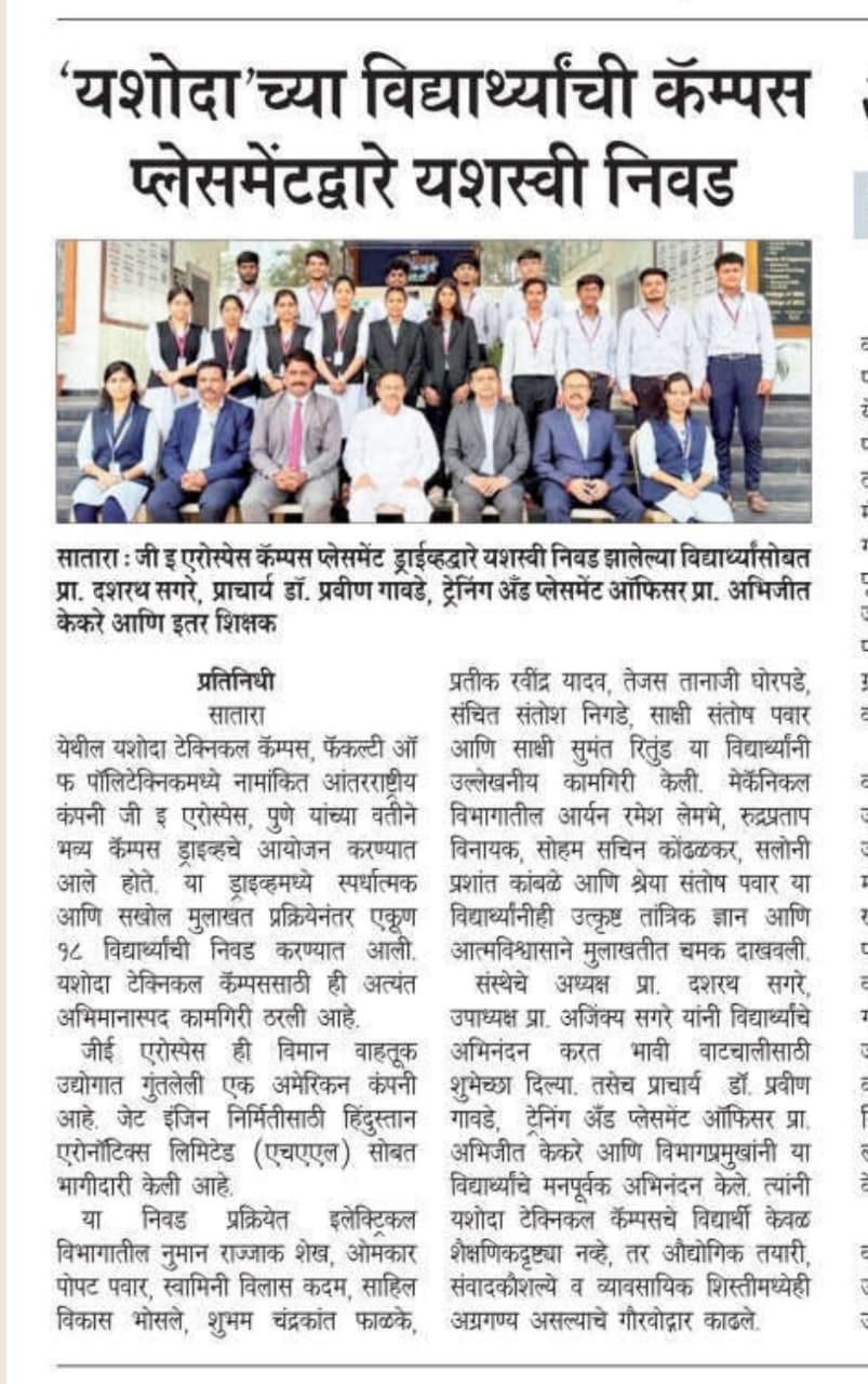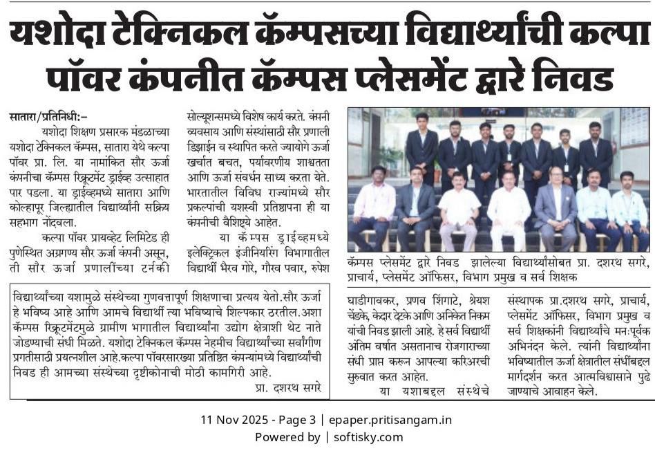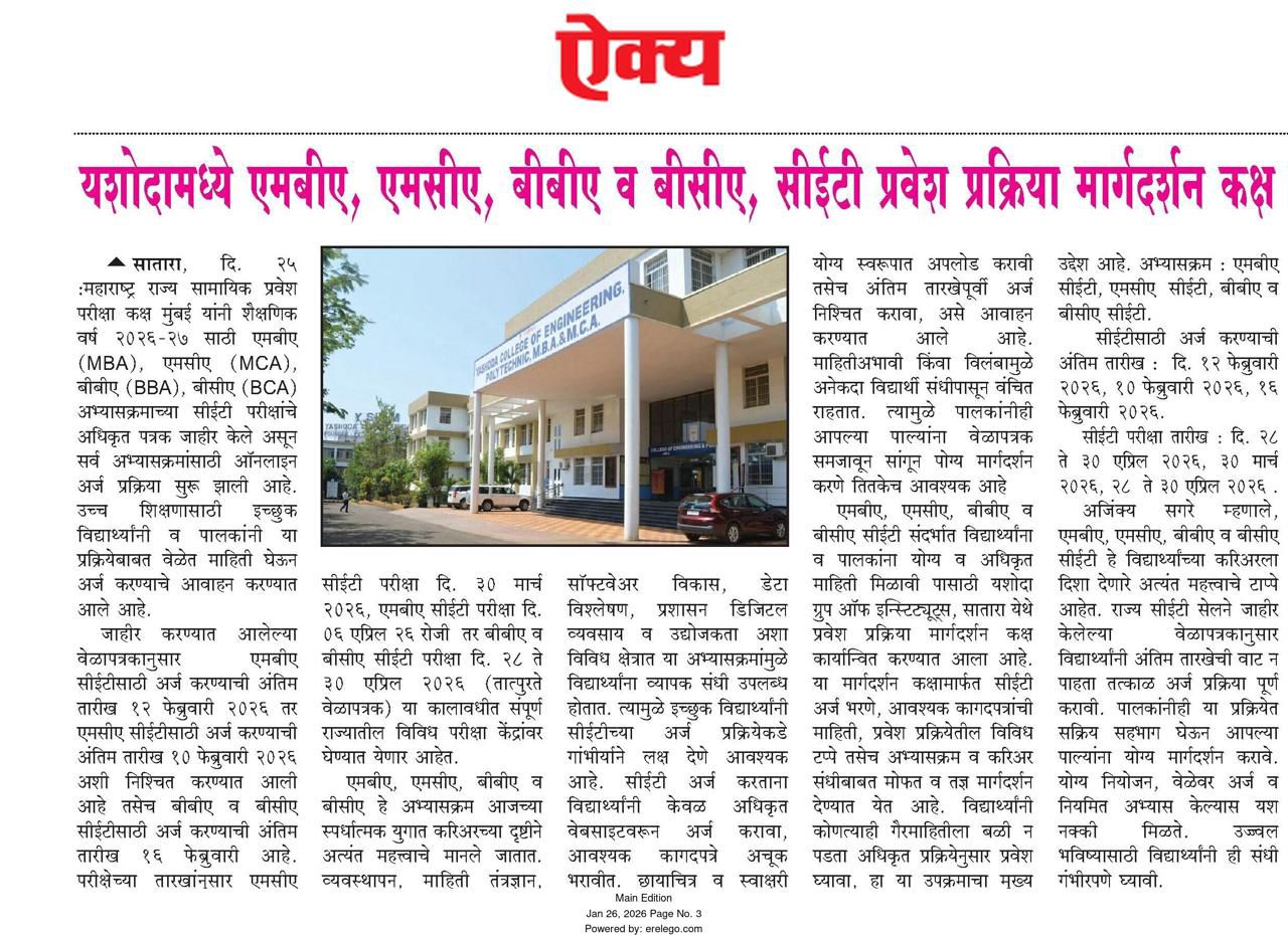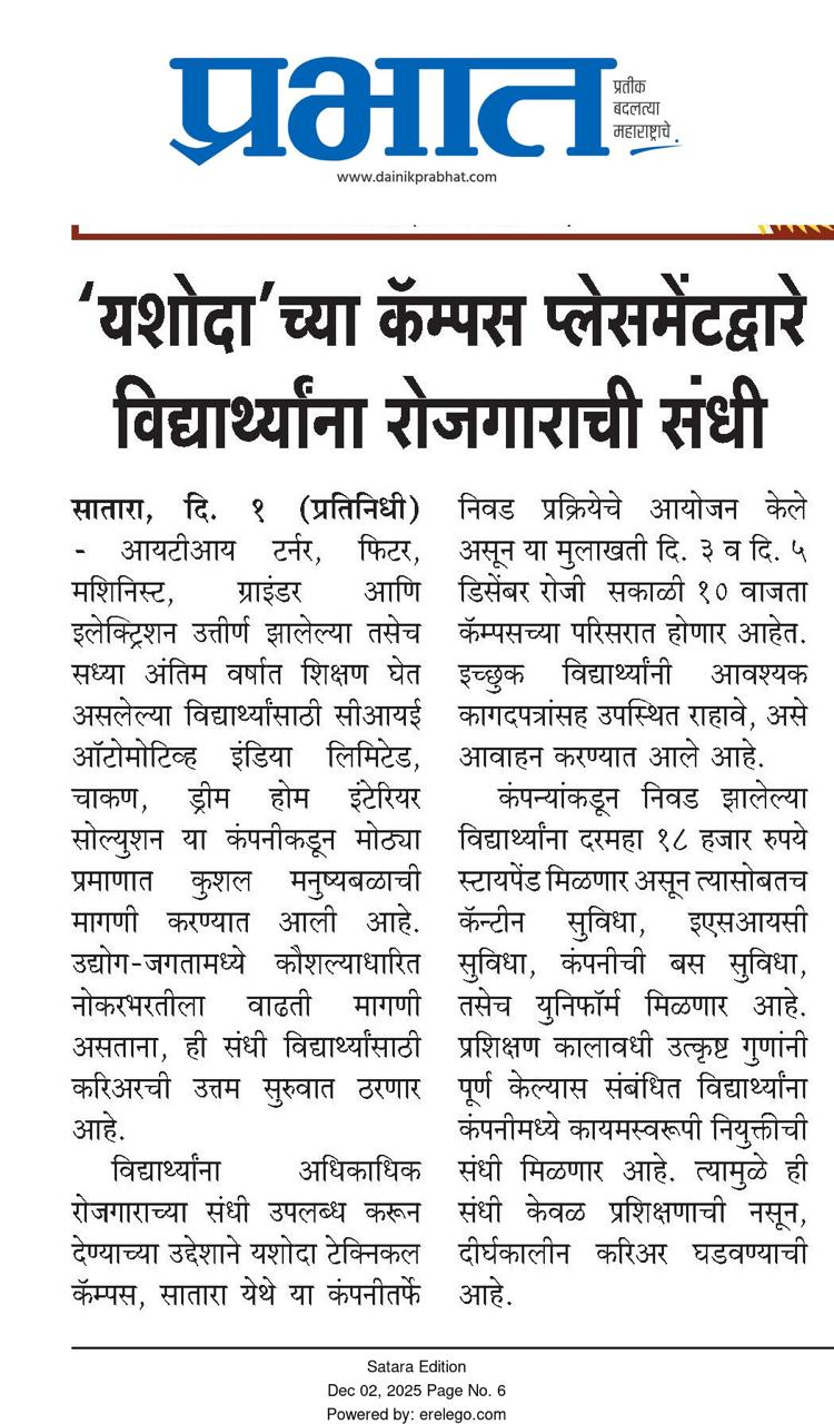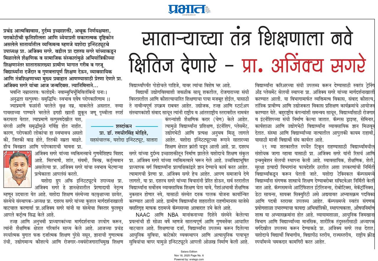 यशोदा टेक्निकल कॅम्पस चा विविध कंपन्यांशी सामंजस्य करार - https://sataranewsmediasevan.com/अग्रगण्य--यशोदा-टेक्निकल-कॅम्पस-सातारा