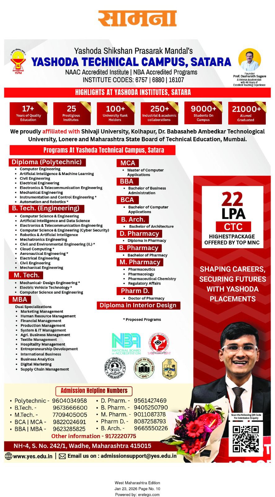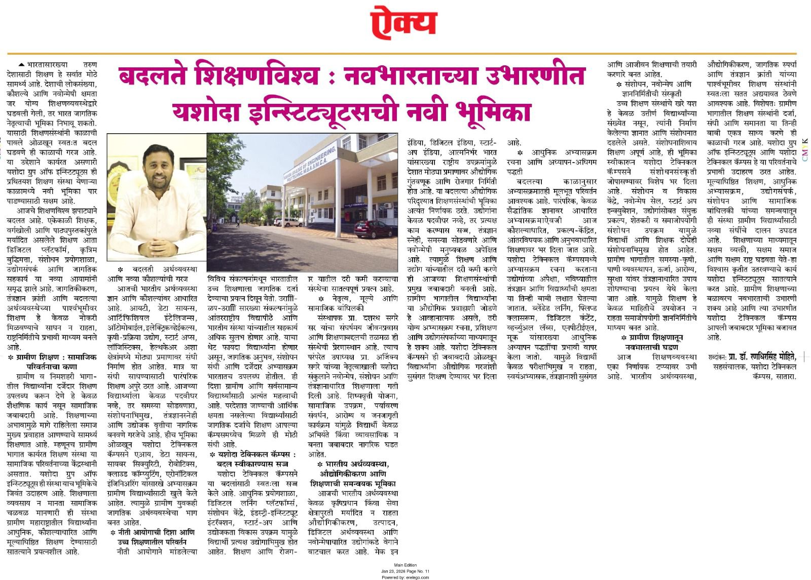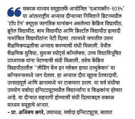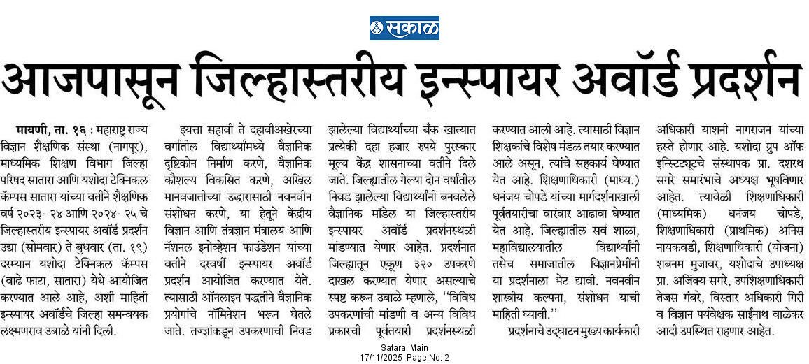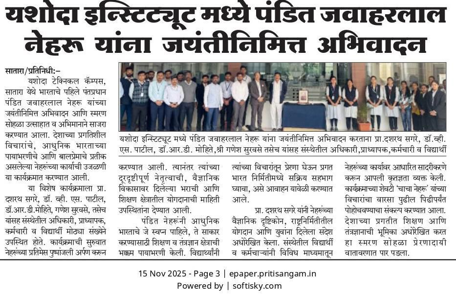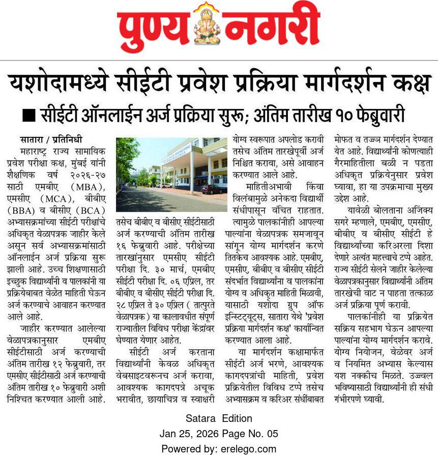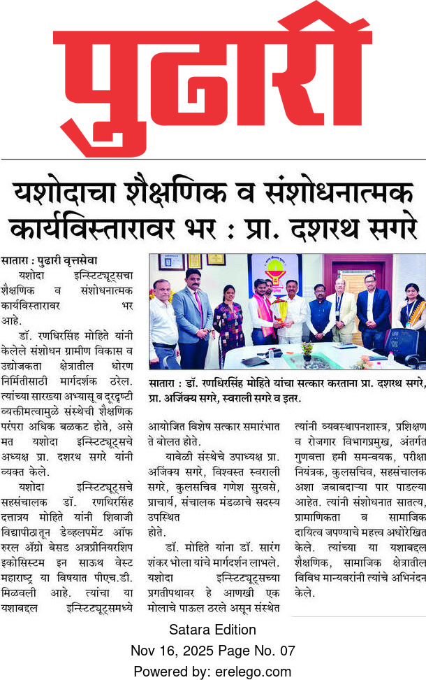 यशोदा टेक्निकल कॅम्पस चा विविध कंपन्यांशी सामंजस्य करार - https://sataranewsmediasevan.com/अग्रगण्य--यशोदा-टेक्निकल-कॅम्पस-सातारा