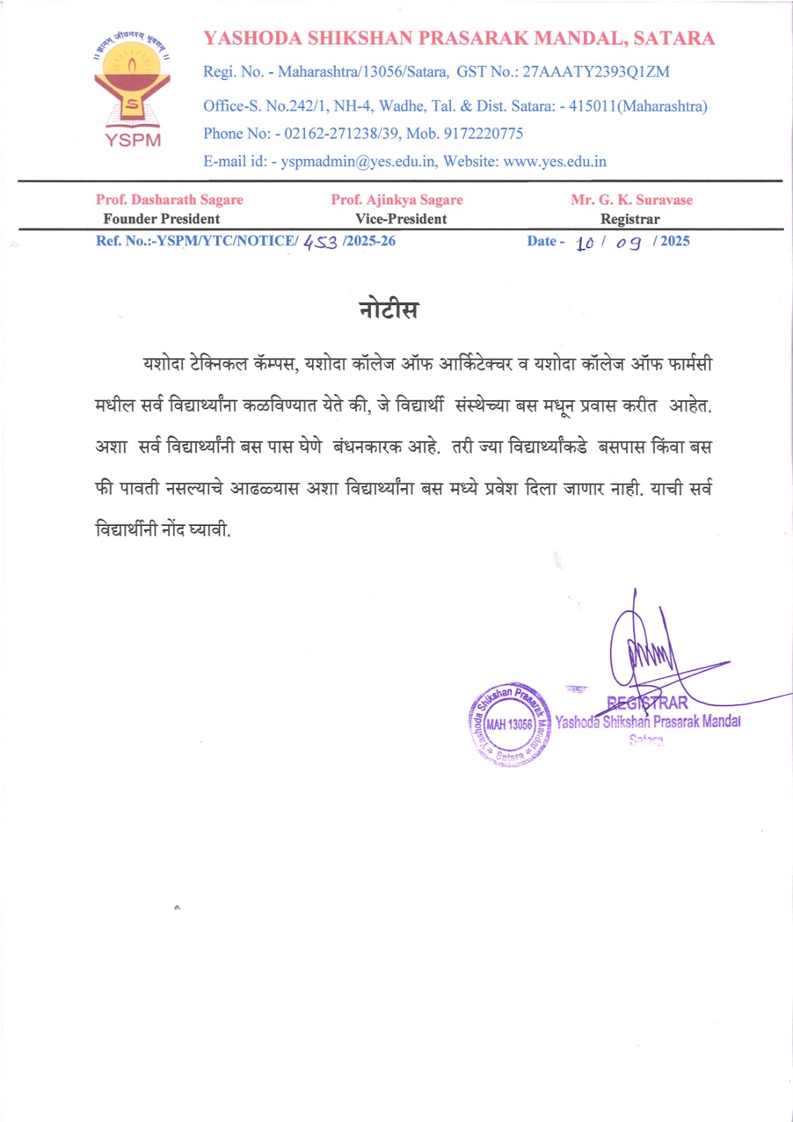 नोटीस सर्व विद्यार्थी - महाराष्ट्र राज्य परिवहन महामंडळ बस सुविधा बाबत |
