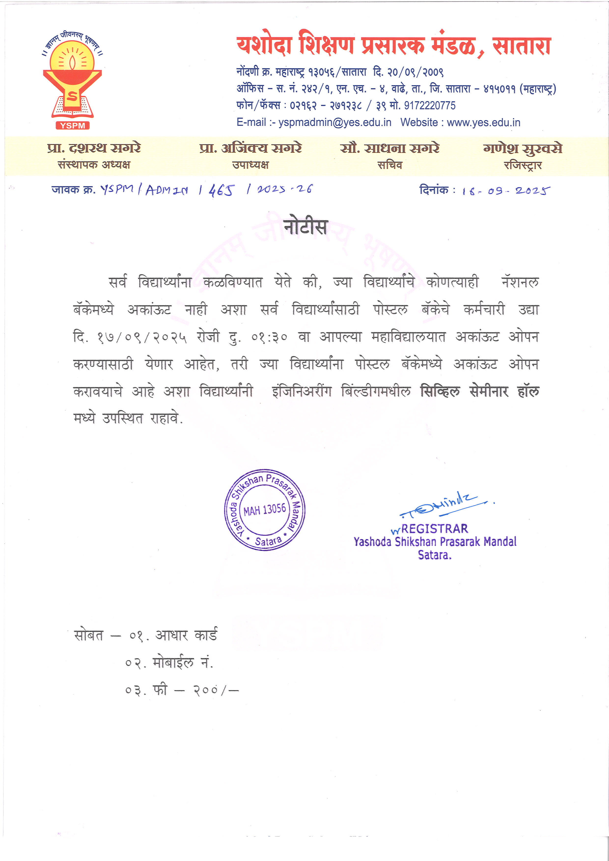 नोटीस सर्व शिक्षक व शिक्षकेत्तर सेवक - महाविद्यालयात शैक्षणिक वर्ष २०२५-२६ प्रवेश प्रक्रीये बाबत |