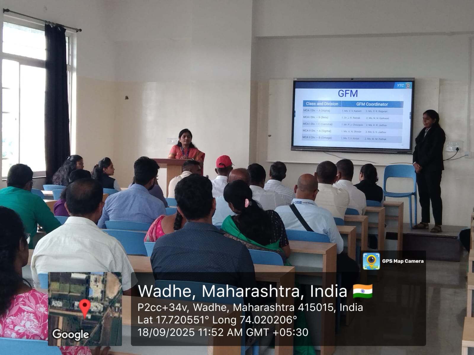 The Department of Computer Application (MCA) organized a Parents’ Meet on 18th September 2025 for the parents of MCA I and MCA II students at Yashoda Technical Campus, Satara. The event was conducted under the guidance of Dr. Samiksha Nikam, Head of Department, along with the active involvement of all faculty members.