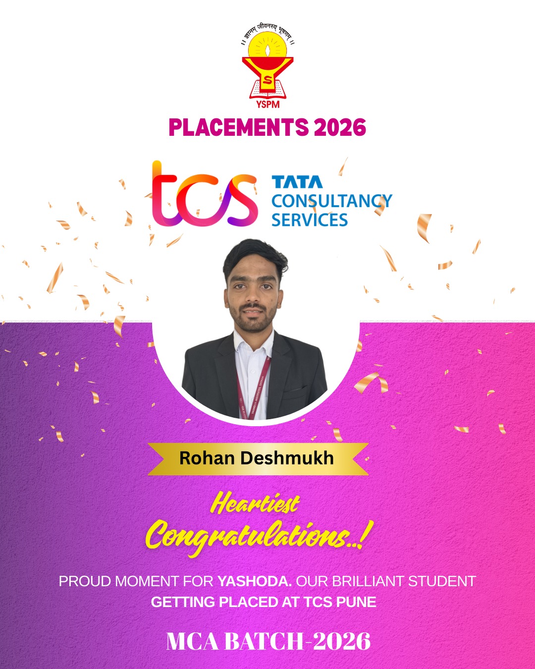 The Department of Master of Computer Applications (MCA) at Yashoda Institutes is proud to recognize the outstanding achievements of its MCA-II 2023-24 pass-out batch. Three talented students from this batch namely Ms. Sakshi Vijay Lahute, Ms. Pradnya Pradip Mane, Mr. Parth Pandurang Bujawadekar have excelled remarkably, securing prestigious ranks of 4th , 9th , and 10th in Shivaji University Kolhapur . Their dedication, hard work, and passion for learning have set a high standard for their peers and have brought honor to the department. This accomplishment not only reflects their individual efforts but also the quality of education and mentorship provided by the faculty. Congratulations to these students for their exceptional performance and success!